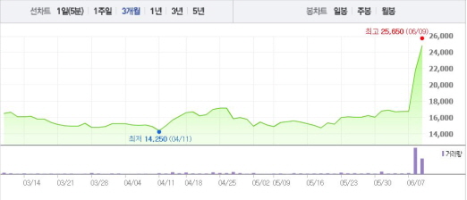 크리스탈은 9일 오전 9시16분 현재 전일 대비 14.48%(3150원) 상승한 2만4900원에 거래되고 있다. 8일에도 크리스탈은 외국인과 기관이 매수에 나서면서 29.85%의 상승폭을 기록했다.