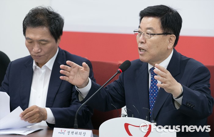 (서울=포커스뉴스) 9일 오전 서울 여의도 국회에서 열린 산업·기업 구조조정 관련 당정간담회에 참석한 김광림(오른쪽) 새누리당 정책위의장이 모두발언을 하고 있다.