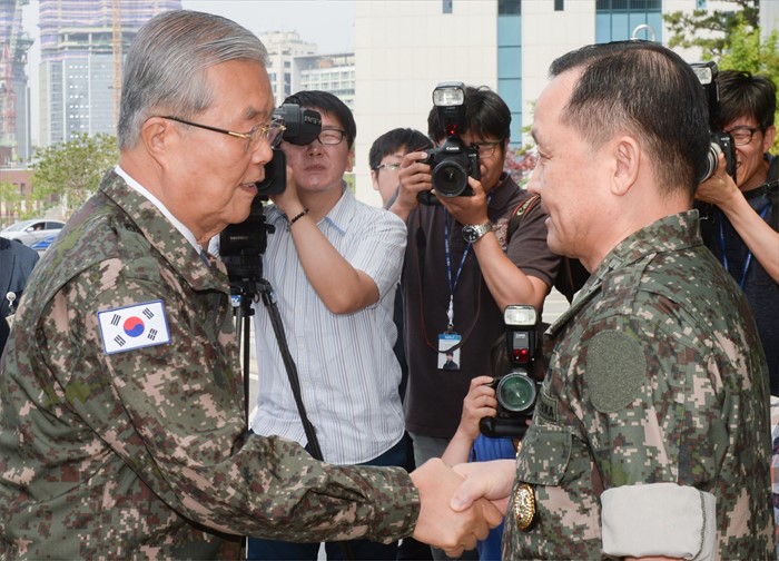 | △ 합참의장과 인사하는 김종인 비대위 대표 |