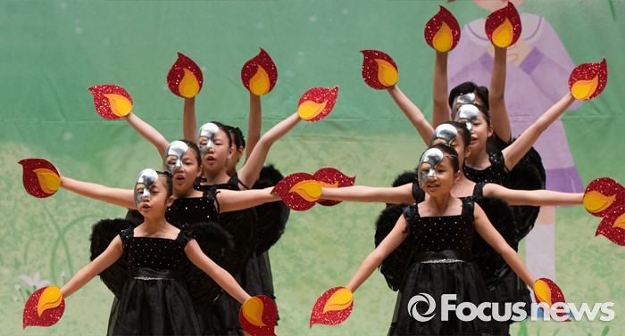 (세종=포커스뉴스) 8일 오후 세종시 조치원읍 문화예술회관에서 열린 제4회 세종 119소방동요 경연대회에 참가한 도담초등학교 어린이들이 율동을 선보이고 있다.