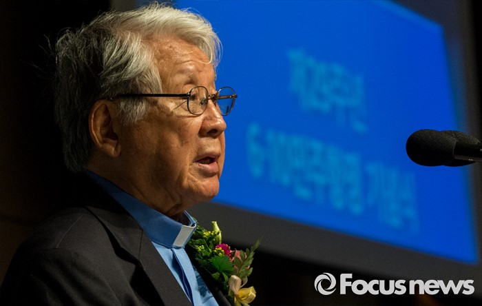 (서울=포커스뉴스) 10일 오전 서울 중구 프레스센터에서 열린 6.10 민주항쟁 제29주년 기념식에 참석한 박상증 민주화운동기념사업회 이사장이 기념사를 하고 있다.