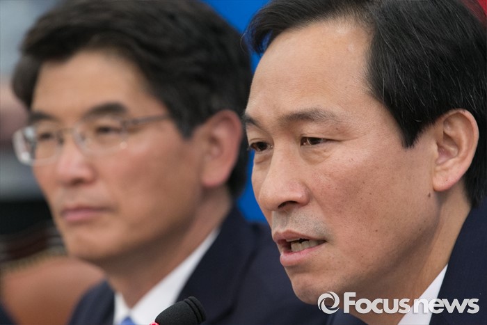 (서울=포커스뉴스) 우상호 더불어민주당 원내대표가 8일 정부의 금융공공기관 성과연봉제 도입에 대해 "법적 절차를 어긴 성과연봉제 추진은 무효"라고 주장했다.