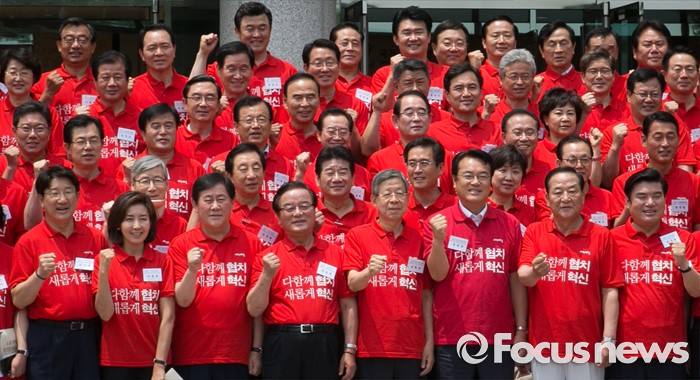 한편 앞서 새누리당은 이날 정책워크숍에서 "우리를 옥죄어왔던 분열과 작은 정치를 넘어 '대통합의 정치'를 실현해 나갈 것"이라면서 "지금 이 순간부터 계파라는 용어를 쓰지 않을 것"이라고 '계파 청산'을 선언한 바 있다.10일 오전 경기도 과천 국가공무원인재개발원에서 열린 2016 새누리당 정책워크숍에 참석한 김희옥 혁신비대위원장, 정진석 원내대표이 기념촬영을 하고 있다. 2016.06.10 박동욱 기자