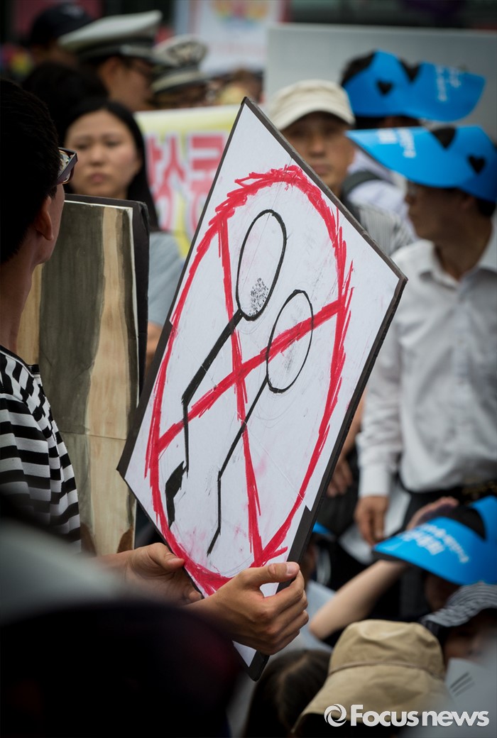 (서울=포커스뉴스) 11일 오후 서울 중구 대한문 앞에서 열린 '2016 서울광장 동성애축제 반대 국민대회'에서 참석자들이 동성애를 반대하는 손팻말을 들고 있다.