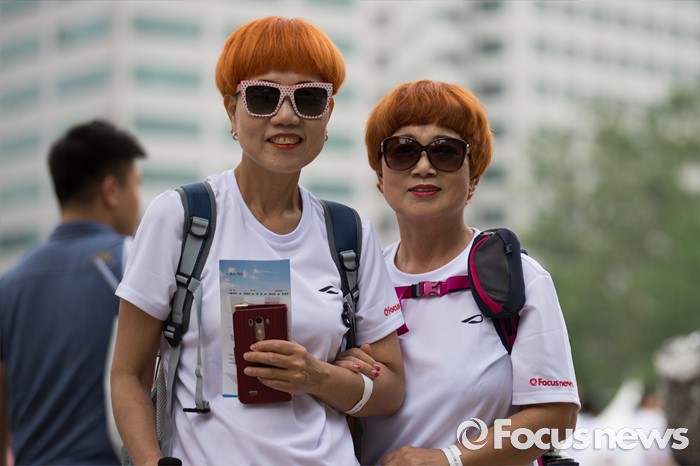 (서울=포커스뉴스) 12일 오전 서울 중구 서울시청 광장에서 열린 제 7회 나라사랑 고궁걷기 대회에 참가한 시민들이 기념촬영을 하고 있다.