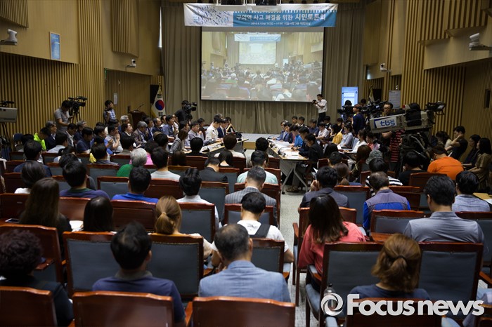 (서울=포커스뉴스) 12일 오후 서울 중구 서울시청에서 박원순 서울시장과 전문가 패널, 시민들이 '구의역 사고 해결을 위한 시민토론회'에 참석해 발표 및 토론을 하고 있다.
