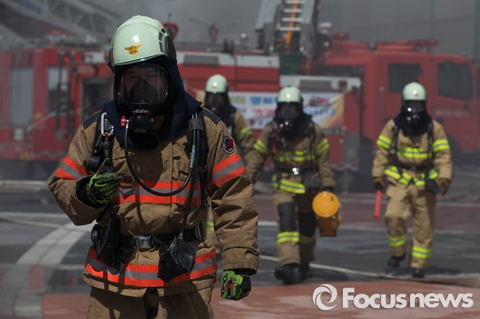 소방당국과 경찰은 음식점의 카운터 부분에서 불이 시작된 것으로 추정하고 정확한 화재 원인을 조사 중이다.지난달 16일 오후 서울 송파구 제2롯데월드몰에서 소방관들이 '재난대응 안전한국훈련'에 참가해 화재진압 훈련을 하고 있다. 2016.05.16 이승배 기자