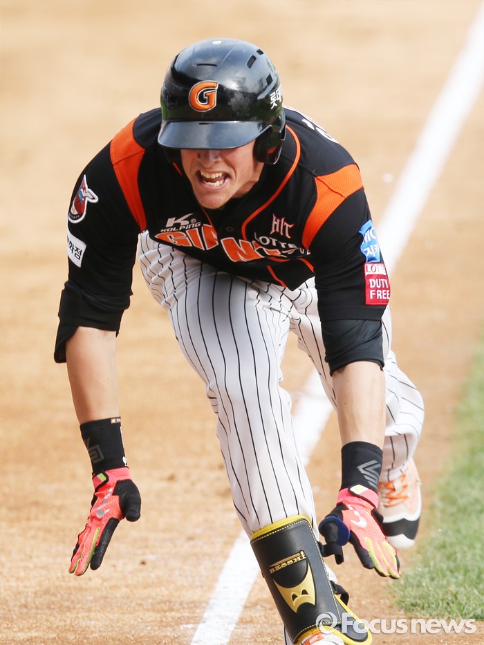 (서울=포커스뉴스) 12일 서울 잠실구장에서 열린 2016 프로야구 롯데-두산 경기 3회초 롯데 선두타자 아두치가 중견수를 넘기는 3루타와 송구 실책을 틈타 홈으로 달리고 있다.