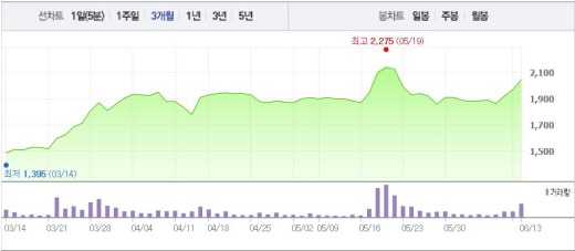 앞서 신일산업은 신제품 ‘블랙라벨 에어 서큘레이터’가 출시 15일만에 판매 2만대를 돌파했다고 발표했다. 이 제품은 신일산업의 모터 기술을 적용한 제품으로 홈쇼핑 방송 4회 중 3회 연속 완판을 기록했다.주가흐름<사진출처=네이버 캡쳐>