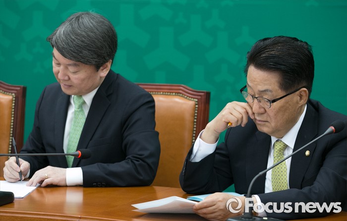 (서울=포커스뉴스) 13일 오전 서울 여의도 국회에서 열린 국민의당 최고위원회의에 참석한 안철수(왼쪽) 상임공동대표와 박지원 원내대표가 생각에 잠겨 있다.