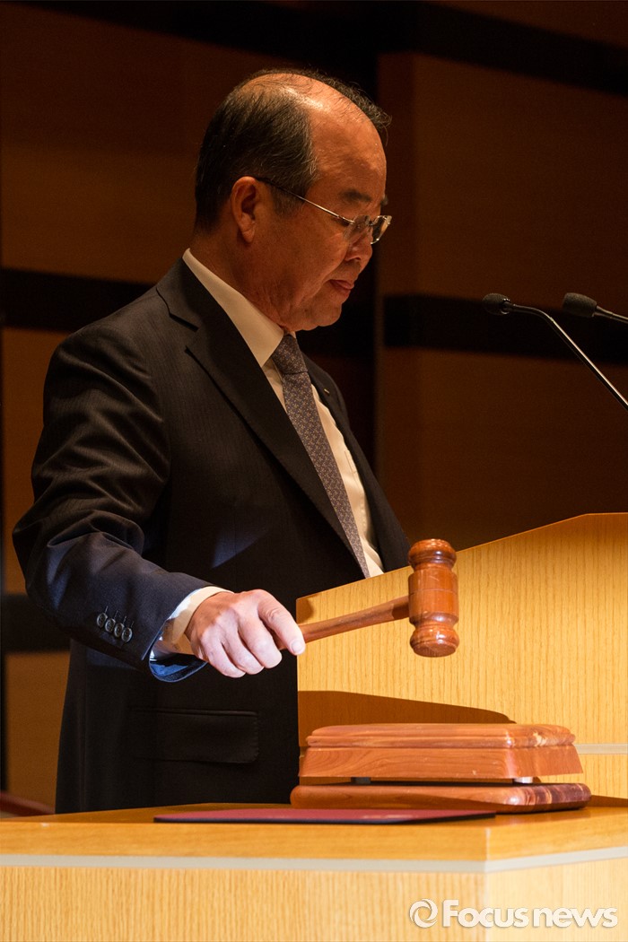 (서울=포커스뉴스) 13일 오전 서울 중구 대우조선해양 본사 대회의실에서 열린 '제17기 제2차 임시주주총회'에 참석한 정성립 대우조선해양 대표이사가 의안을 상정하고 있다.