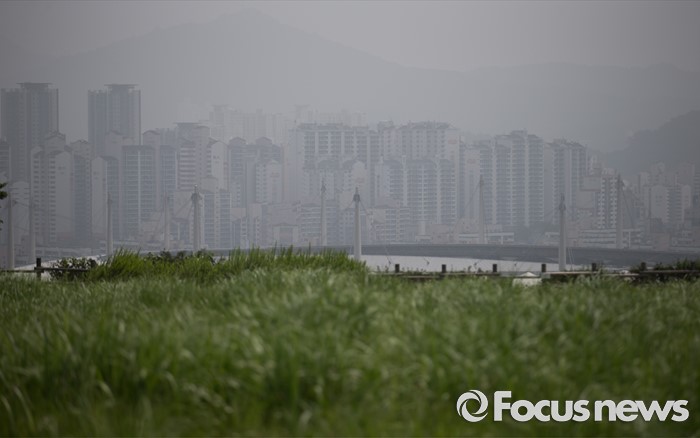 (서울=포커스뉴스) 13일 서울 마포구 하늘공원에서 바라본 서울 도심이 안개로 뿌옇게 보이고 있다.