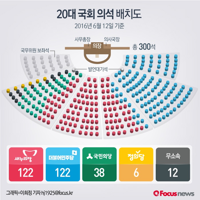 | △ [그래픽] 20대 국회 의석 배치도 |