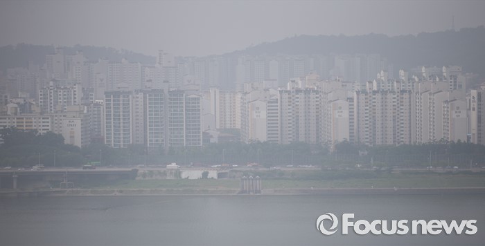 (서울=포커스뉴스) 13일 서울 마포구 하늘공원에서 바라본 한강과 서울도심이 안개로 뿌옇게 보이고 있다.