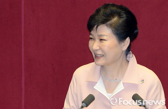 (서울=포커스뉴스) 박근혜 대통령이 13일 오전 서울 여의도 국회에서 열린 20대 국회 개원식에 참석해 연설을 하고 있다.