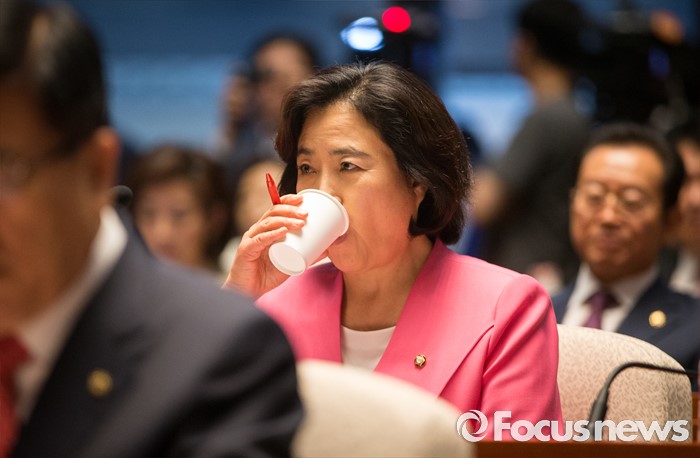 (서울=포커스뉴스) 박순자 새누리당 의원이 13일 오전 서울 여의도 국회에서 열린 의원총회에 참석해 물을 마시고 있다.
