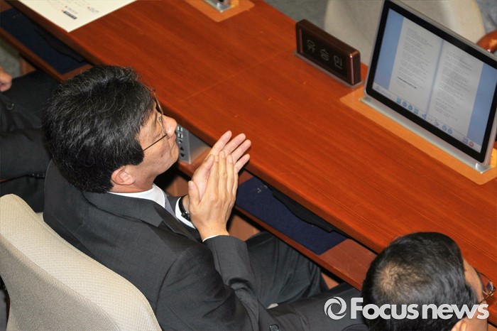 (서울=포커스뉴스) 유승민 무소속 의원이 13일 오전 서울 여의도 국회에서 열린 20대 국회 개원식에 참석해 박근혜 대통령의 연설을 들으며 박수치고 있다.