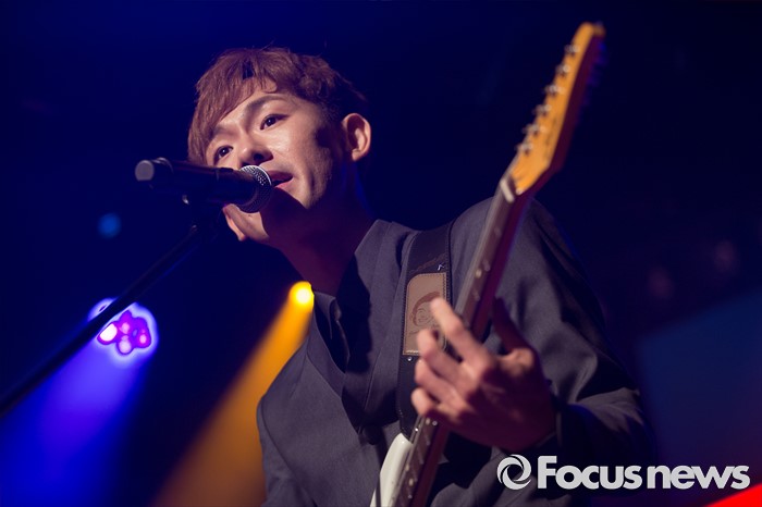 (서울=포커스뉴스) 13일 오후 서울 마포구 웨스트브릿지 라이브 홀에서 열린 데이브레이크의 네 번째 정규앨범 'WITH' 발매 기념 쇼케이스에서 기타 정유종이 공연에 몰두하고 있다.