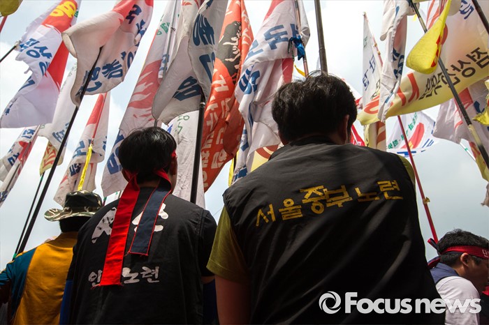 (서울=포커스뉴스) 13일 오후 서울 용산구 서울역광장에서 '제 29주년 6.13 정신계승 전국노점상대회'가 열리고 있다. 6.13 대회는 1988년 6월 13일 억눌린 노점상의 울분이 처음 세상 밖으로 터져 나온 날을 기념하기 위한 날이며 이번 집회에서는 노점관리대책 중단, 노점 생존권 보장, 기본법 및 노점상보호 특별법 제정 등을 요구했다.