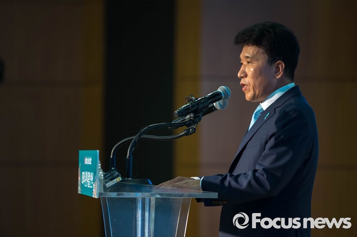 (서울=포커스뉴스) 13일 오후 서울 중구 KEB 하나은행 본점에서 열린 'One Bank, New Start' 선언식에 참석한 함영주 KEB 하나은행장이 축사를 하고 있다.