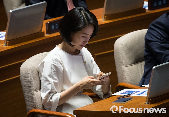 (서울=포커스뉴스) 13일 오후 서울 여의도 국회에서 상임위원장 선출을 위해 열린 343회 국회(임시회) 2차 본회의에 참석한 김수민 국민의당 의원이 휴대폰을 만지고 있다.