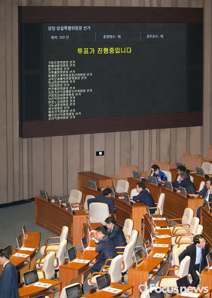(서울=포커스뉴스) 13일 오후 서울 여의도 국회에서 상임위원장 선출을 위해 열린 343회 국회(임시회) 2차 본회의에 참석한 의원들이 투표를 기다리고 있다.