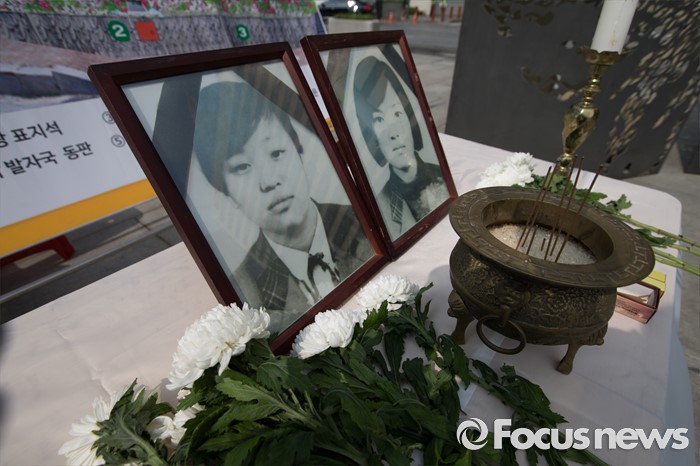 (서울=포커스뉴스) 2002년 미군 궤도차량에 치여 숨진 고(故) 신효순·심미선 양 14주기인 13일 오후 서울 종로구 광화문 광장에 분향소가 마련되었다.