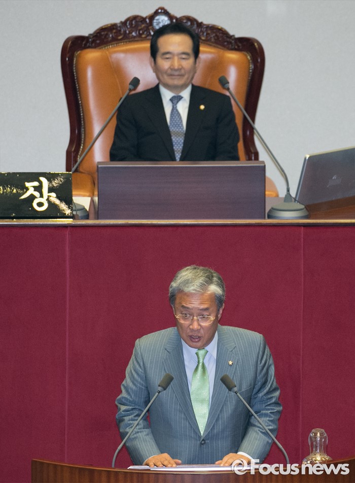 (서울=포커스뉴스) 13일 오후 서울 여의도 국회에서 열린 343회 국회(임시회) 2차 본회의에 참석한 유성엽 신임 교육문화체육관광위원장이 당선 인사를 하고 있다.