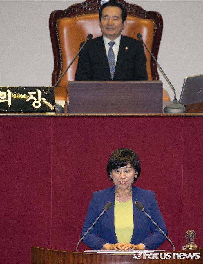 (서울=포커스뉴스) 13일 오후 서울 여의도 국회에서 열린 343회 국회(임시회) 2차 본회의에 참석한 남인순 신임 여성가족위원장이 당선 인사를 하고 있다.