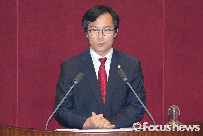 (서울=포커스뉴스) 13일 오후 서울 여의도 국회에서 열린 343회 국회(임시회) 2차 본회의에 참석한 김영우 신임 국방위원장이 당선 인사를 하고 있다.