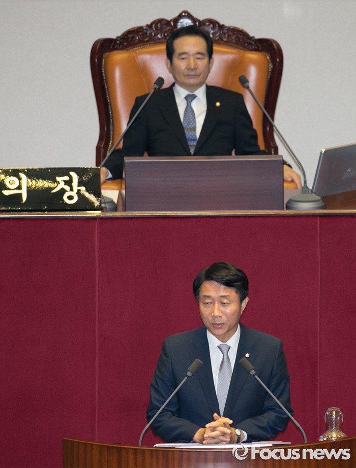 (서울=포커스뉴스) 13일 오후 서울 여의도 국회에서 열린 343회 국회(임시회) 2차 본회의에 참석한 조정식 신임 국토교통위원장이 당선 인사를 하고 있다.