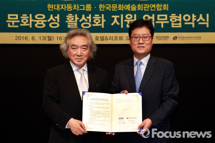 (서울=포커스뉴스) 현대자동차그룹은 13일 제주 해비치 호텔에서 한국문화예술회관연합회와 '문화예술 활성화 지원 협약식'을 가졌다.