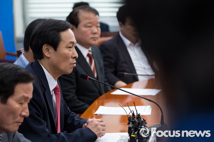 (서울=포커스뉴스) 우상호 더불어민주당 원내대표가 14일 오전 서울 여의도 국회에서 열린 '개성공단기업협회 면담'에 앞서 모두발언 하고 있다.