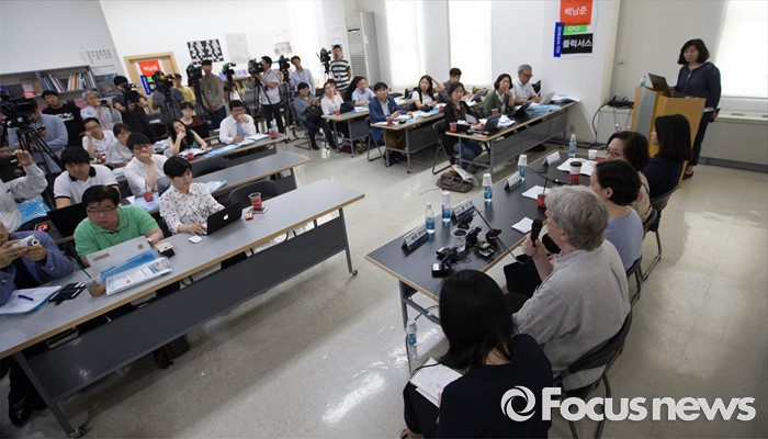 | △ 많은 관심 속 열린 '천경자-백남준 전시 기자간담회' |