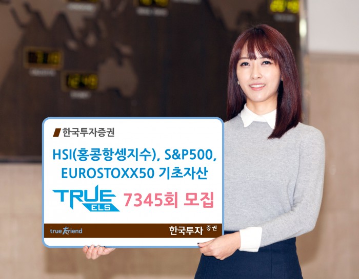 (서울=포커스뉴스) 한국투자증권이 오는 16일까지 HSI(홍콩항셍지수), S&P500, EUROSTOXX50지수를 기초자산으로 하는 'TRUE ELS 7345회 스텝다운형'을 총 50억 한도로 모집한다고 14일 밝혔다.
