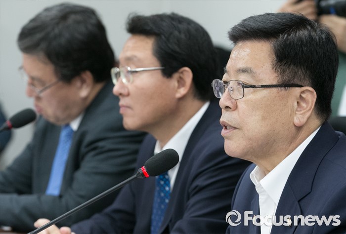 (서울=포커스뉴스) 14일 오후 서울 여의도 국회에서 열린 맞춤형 보육 관련 당정간담회에 참석한 김광림(오른쪽) 새누리당 정책위의장이 모두발언을 하고 있다.