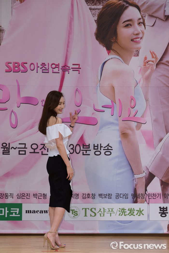 (서울=포커스뉴스) 14일 오후 서울 양천구 SBS 목동사옥에서 열린 SBS 일일드라마 '사랑이 오네요' 제작발표회에 참석한 배우 이민영이 포토타임을 갖고 있다.