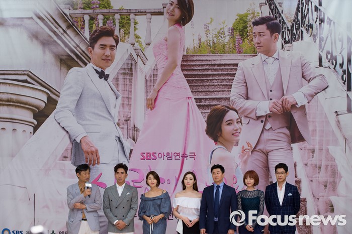 (서울=포커스뉴스) 14일 오후 서울 양천구 SBS 목동사옥에서 열린 SBS 일일드라마 '사랑이 오네요' 제작발표회에 참석한 배우들이 포토타임을 갖고 있다.