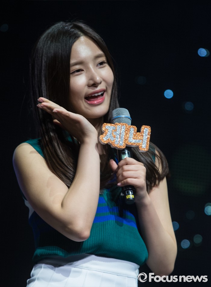 (서울=포커스뉴스) 14일 오후 서울 마포구 롯데카드 아트센터에서 열린 걸그룹 다이아의 두번째 앨범 'HAPPY ENDING' 발표 쇼케이스에 참여한 멤버 제니가 인사말을 하고 있다.