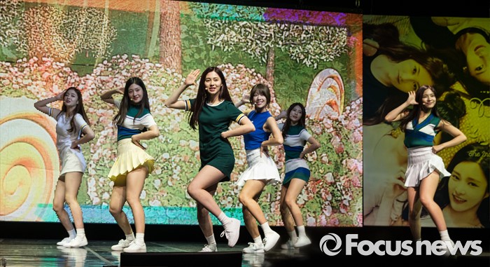 (서울=포커스뉴스) 14일 오후 서울 마포구 롯데카드 아트센터에서 걸그룹 다이아의 멤버들이 두번째 앨범 'HAPPY ENDING' 발표하고 무대를 선보이고 있다.