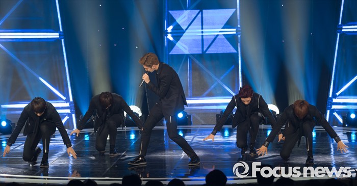 (서울=포커스뉴스) 14일 오후 서울 마포구 SBS프리즘 타워에서 열린 SBS MTV '더쇼' 생방송 현장에 참여한 아이돌 그룹 크나큰의 멤버들이 무대를 선보이고 있다.