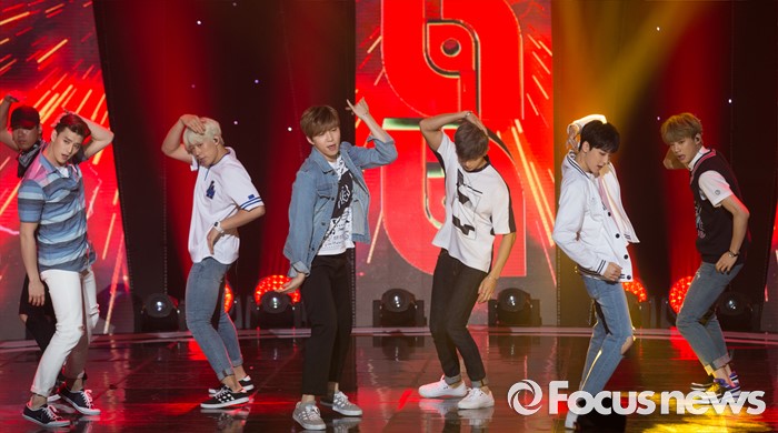 (서울=포커스뉴스) 14일 오후 서울 마포구 SBS프리즘 타워에서 열린 SBS MTV '더쇼' 생방송 현장에 참여한 아이돌그룹 유키스의 멤버들이 무대를 선보이고 있다.