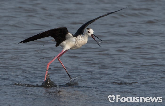 (인천=포커스뉴스) 수커과 교대한 장다리물떼새 암컷이 재빠른 동작으로 먹이를 잡고 있다.