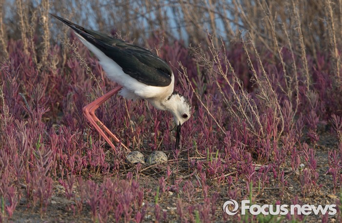 (인천=포커스뉴스) 장다리물떼새 수컷이 인천시 영종도 매립지내 둥지에서 암컷이 낳아온 3개의 알을 품기 위해 부리로 알을 가지런히 하고있다.