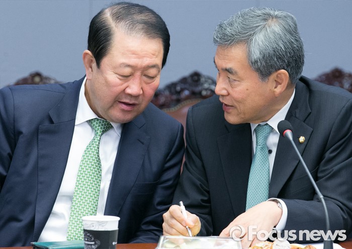 (서울=포커스뉴스) 15일 오전 서울 여의도 국회 의원회관에서 열린 15차 국민의당 정책역량강화 집중 워크숍에 참석한 박주선(왼쪽) 국회 부의장과 김수민 의원 리베이트 의혹의 진상조사단장을 맡은 이상돈 최고위원이 대화하고 있다.