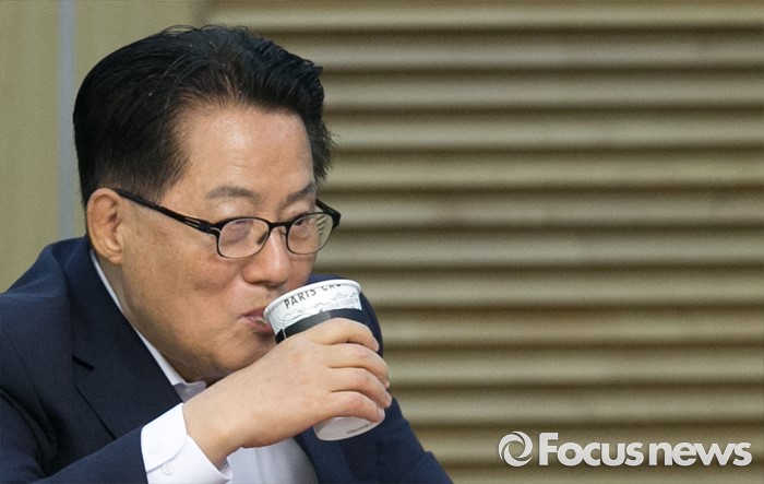 (서울=포커스뉴스) 15일 오전 서울 여의도 국회 의원회관에서 열린 15차 국민의당 정책역량강화 집중 워크숍에 참석한 박지원 원내대표가 음료를 마시고 있다.