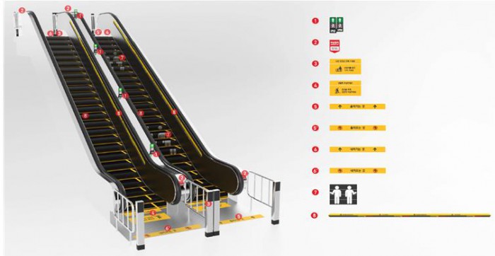 새로 선보인 안전친화형 디자인은 에스컬레이터 △진출입부 비상정지 버튼의 크기와 시인성 향상 △보행금지 신호등 표지 신설 △손잡이 잡기 표지 도안(픽토그램) 신설 등을 통해 이용 안전수칙을 표시해 자연스럽게 이용자의 주의를 끌도록 했다.