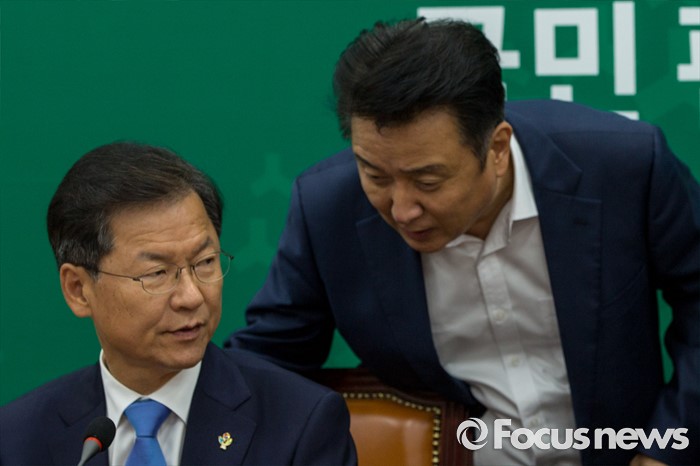 (서울=포커스뉴스) 천정배(왼쪽) 국민의당 공동대표가 15일 오전 서울 여의도 국회에서 열린 최고위원회의에 참석해 김영환 사무총장과 대화를 나누고 있다.