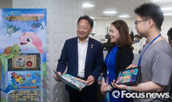 (서울=포커스뉴스) 유일호 경제부총리 겸 기획재정부 장관이 15일 오전 서울 종로구 서울창조경제혁신센터 부속 인큐베이팅 센터에서 입주기업을 둘러보고 있다.