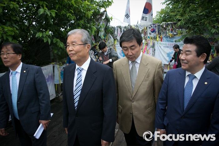 (파주=포커스뉴스) 15일 오전 경기도 파주 임진각 통일전망대에서 더불어민주당 비상대책위원회의를 마친 김종인 비대위 대표와 의원들이 자유의 다리를 찾아 둘러본 뒤 이동하고 있다.